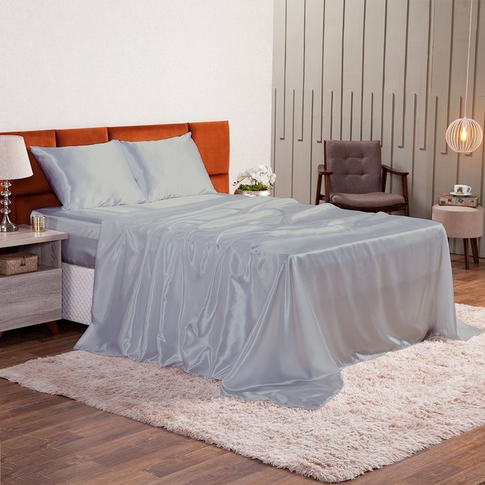 Jogo de Lençol Cetim Queen Prata 4 Peças Casa Dona Prata