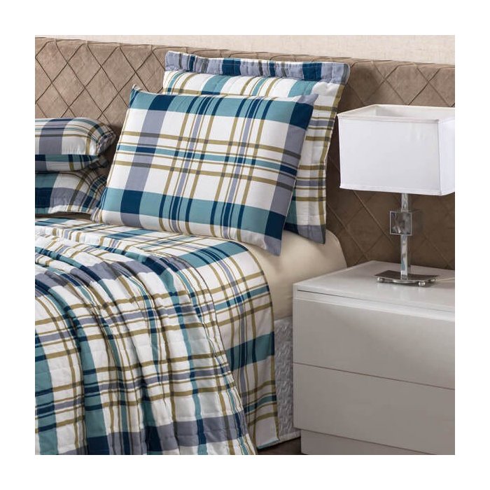 Jogo de Lençol Classic Casal Padrão 4 Peças Branco/Amarelo/Azul