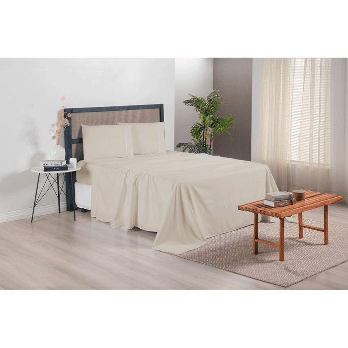 Jogo de Lençol Completo Casal Queen Size Versatile Ponto Palito 4 Peças Micropercal 300 Fios Cáqui Cáqui