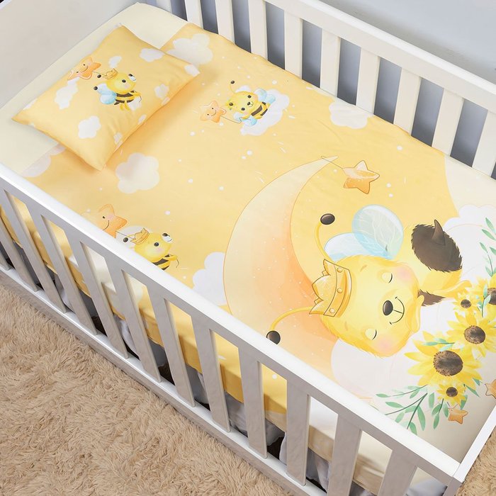 Jogo de Lençol de Berço Americano 3 Peças Infantil Estampado Fronha Elástico Menino Menina Abelinha