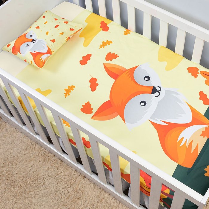 Jogo de Lençol de Berço Americano 3 Peças Infantil Estampado Fronha Elástico Menino Menina Raposa