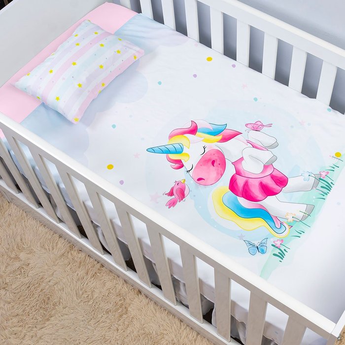 Jogo de Lençol de Berço Americano 3 Peças Infantil Estampado Fronha Elástico Menino Menina Unicórnio