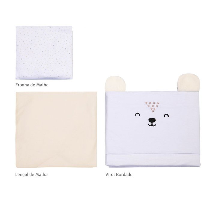 Jogo de Mini Cama Mami Bichuus 3 peças• PERFEITO PARA MINI CAMA: use com o nosso kit de rolinhos de berço e pronto, forme uma linda composição de caminha.• PEÇAS ESTAMPADAS SUPER FOFAS E MODERNAS: escolha entre 4 opções de cores e bichinhos.• PEÇA BORDADA: virol bordado com a carinha de cada bichinho e com orelhinhas de aplicação.• TECIDO 100% ALGODÃO EM MALHA: super macio e confortável.• PRODUTO DE ALTA QUALIDADE: nossos jogos são feitos com todo cuidado e carinho.• POSSUI 3 PEÇAS: 1 virol bordado, 1 fronha e 1 lençol c/ elástico.Seguindo as tendências, agora temos produtos lindos e fofos para mini cama! Nossos jogos para mini cama Mami Bichuus possui 3 peças, sendo elas: 1 virol bordado 1,68mx96cm, 1 lençol de malha com elástico 1,50mx70cmx12cm e 1 fronha de malha 50cmx70cm, sendo que o lençol é tinto, o virol bordado com aplicação de tecido e fronha estampados. São feitos em tecido de malha 100% algodão, super macio e confortável e vem em 4 cores e estampas fofas: azul de cachorrinho, rosa de gatinha, creme de ursinho e cinza de coelhinho.