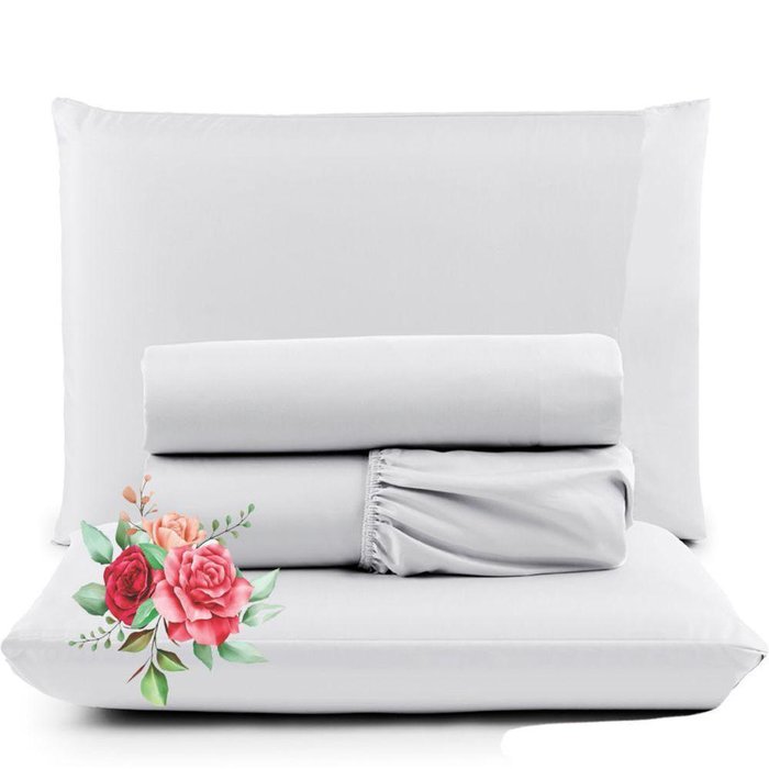 Jogo De Lençol Dia A Dia Queen 4 Peças Barato - Branco