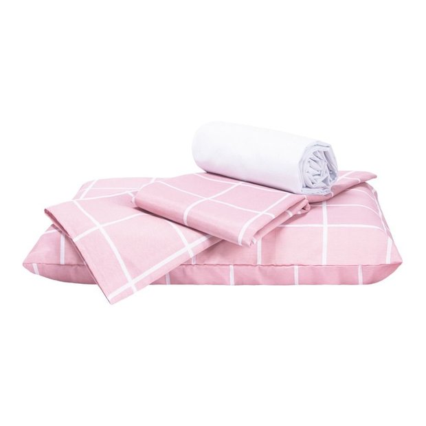 Jogo de Lençol Essencialle Solteiro 3 peças Grid Rosa Rosa