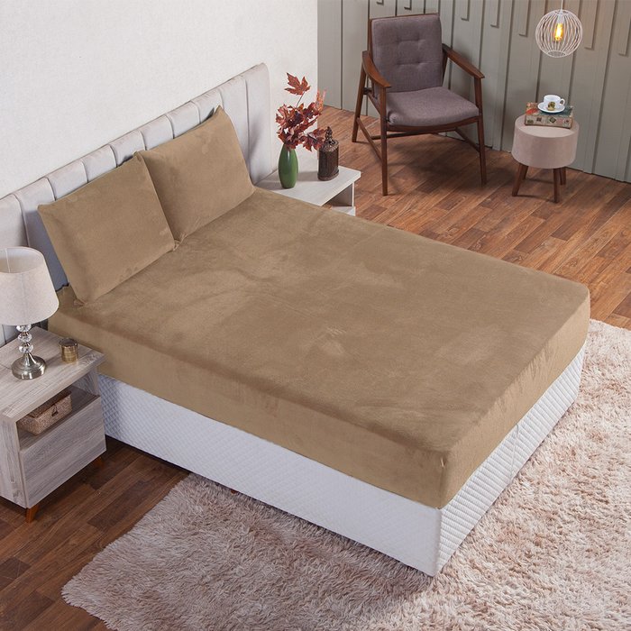 Jogo de Lençol Felpudo Fofinho Quentinho 3 Peças Queen Bege Casa Dona Bege
