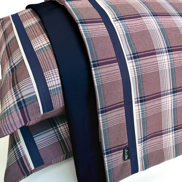 - Cor do lençol de cima: xadrez vinho, branco e azul