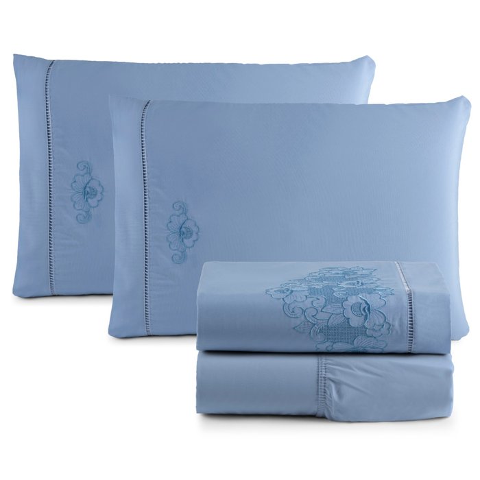 Jogo de Lençol Imperial Queen 04 Peças 200 Fios azul