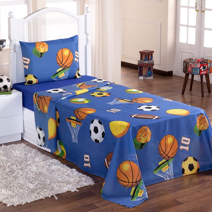 Jogo de Lençol Infantil Menino Esporte Futebol 3 Peças Estampado de Microfibra