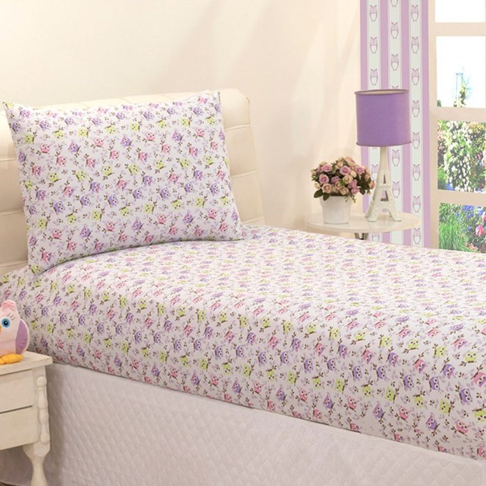 Jogo de Lençol Infantil Solteiro Tricoline 100% Algodão 2 Peças:coruja Coruja