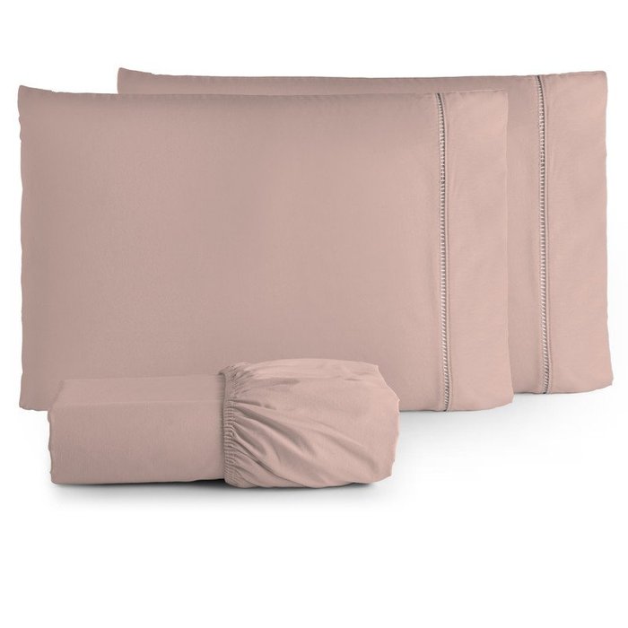 Jogo de Lençol King 3 Peças 180 Fios Algodão Liso:rose