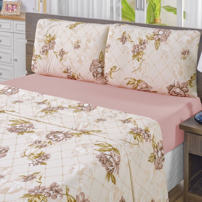 Jogo de Lençol King em Malha 100% Algodão 4 Peças - Rosê