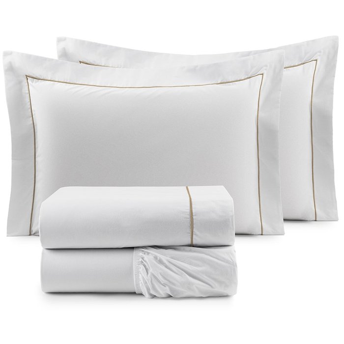 Jogo De Lençol King Glass 4Pçs 200 Fios 100% Algodão Branco/Dourado