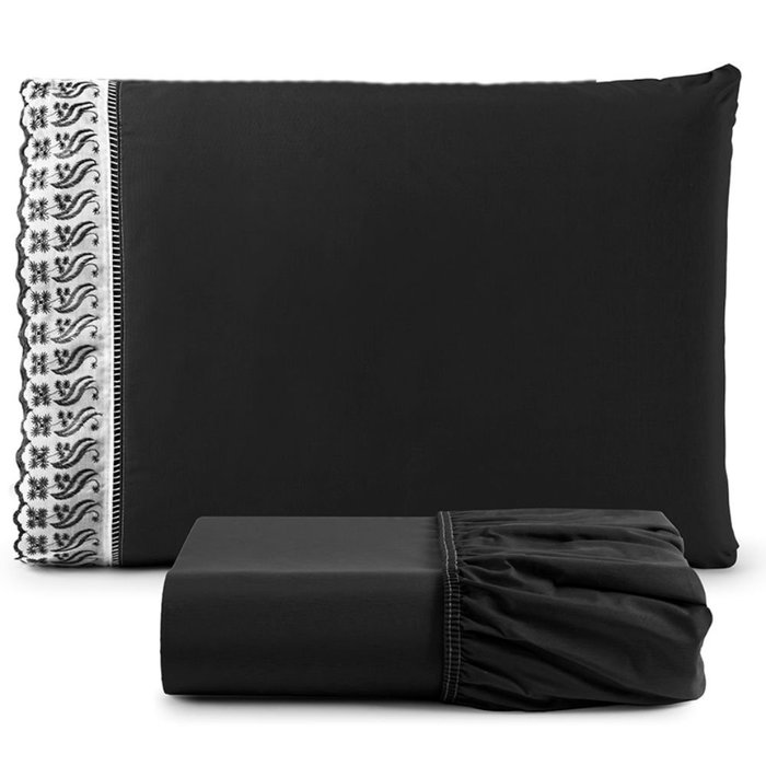 Jogo de Lençol Lese Percal 180 Fios Solteiro 2 Peças Barato - Preto Casa Show Enxovais Preto