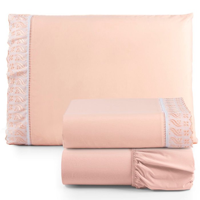 Jogo de Lençol Lese Percal 180 Fios Solteiro 3 Peças Barato - Salmão Casa Show Enxovais Salmão