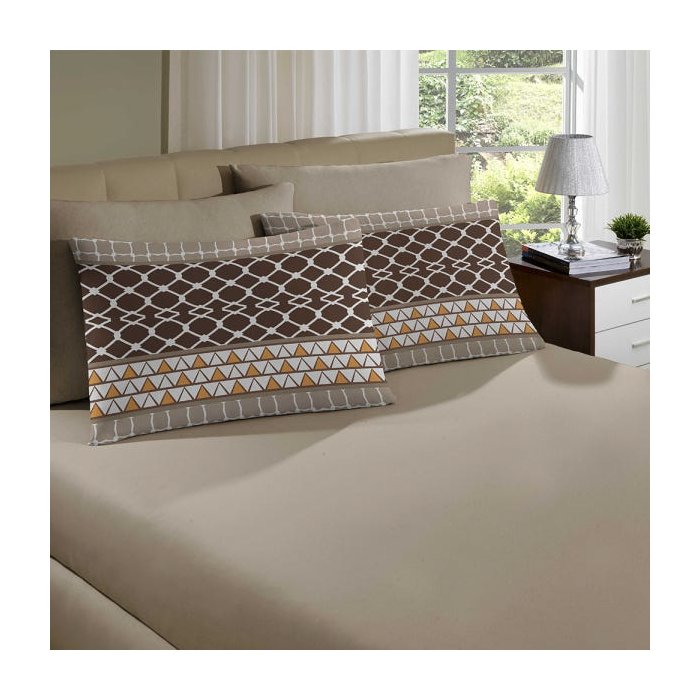 Jogo de Lençol Malha 100% Algodão Queen Pequim Trigo Linha Casa Portallar 3 peças