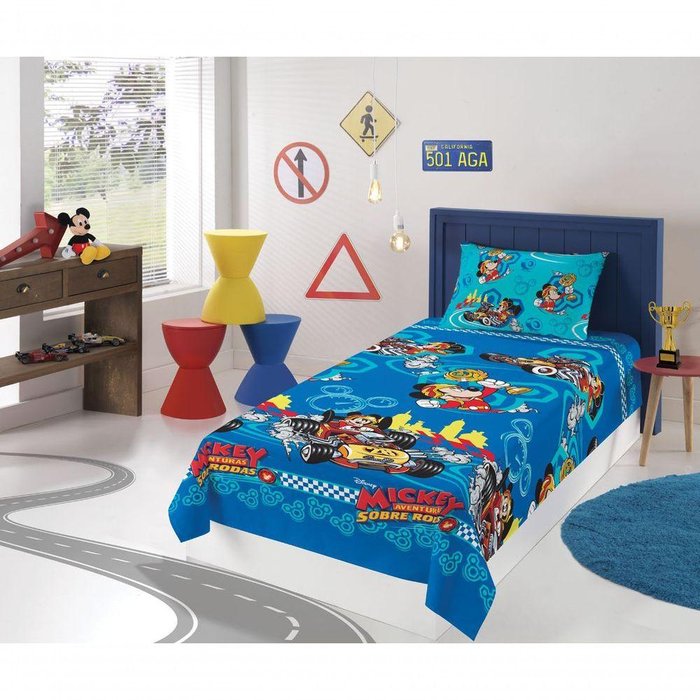 Jogo De Lençol Personagens Mickey Solteiro Lepper 2 Peças Microfibra Azul