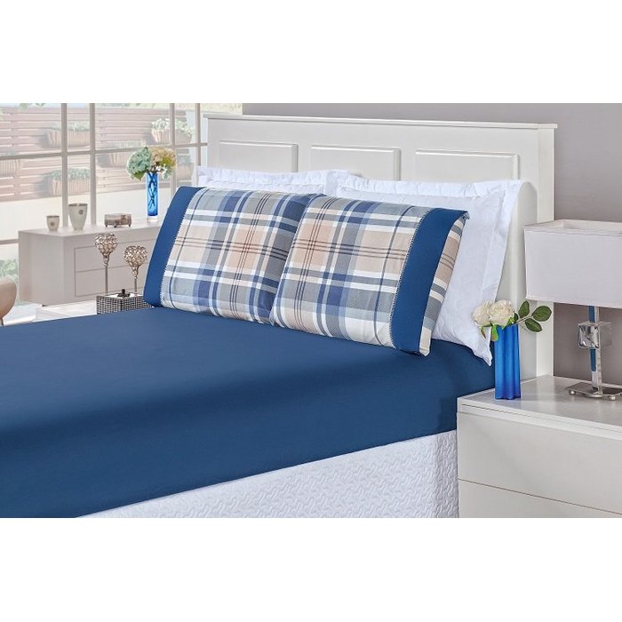 Jogo de Lençol Naturale King 3Pçs Estampado Xadrez Azul