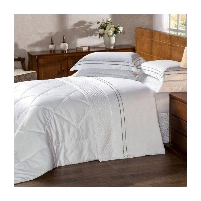 Jogo de Lençol Percal 500 Fios Casal 04 Peças - Plumasul BRANCO/CINZA