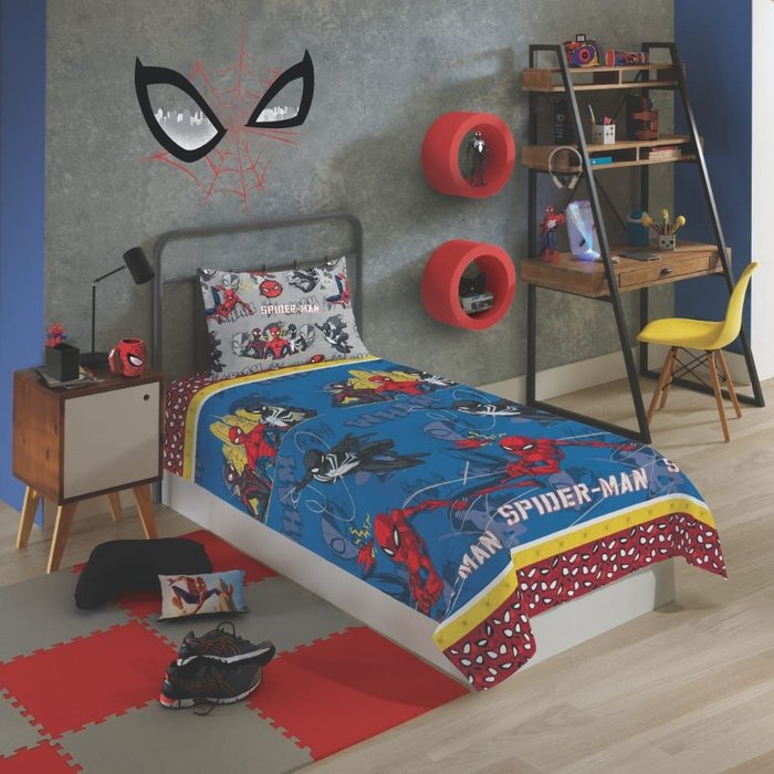 O jogo de cama da coleção Spider-man ilustra o herói lançando suas teias, pronto para mais uma aventura. Ele possui o jeito Lepper, com um tecido de microfibra cheio de maciez, boa durabilidade, fácil de lavar, secagem rápida e ótimo caimento na cama, já que não amassa! A hora de dormir dos pequenos, junto de seu personagem favorito, pode ser mais alegre, mais divertida, mais Lepper.