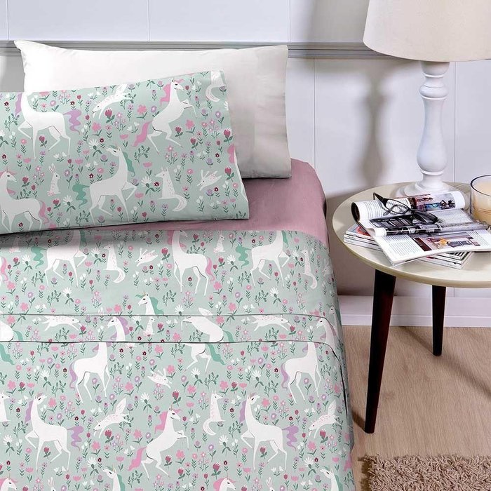Jogo de Lençol Planeta Mágico Solteiro 3 Peças Infantil Estampado - Poney Rosa Nature