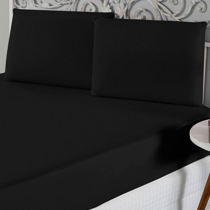 Jogo de Lençol Queen Malha 100% Algodão 3 Peças Cor Preto Preto
