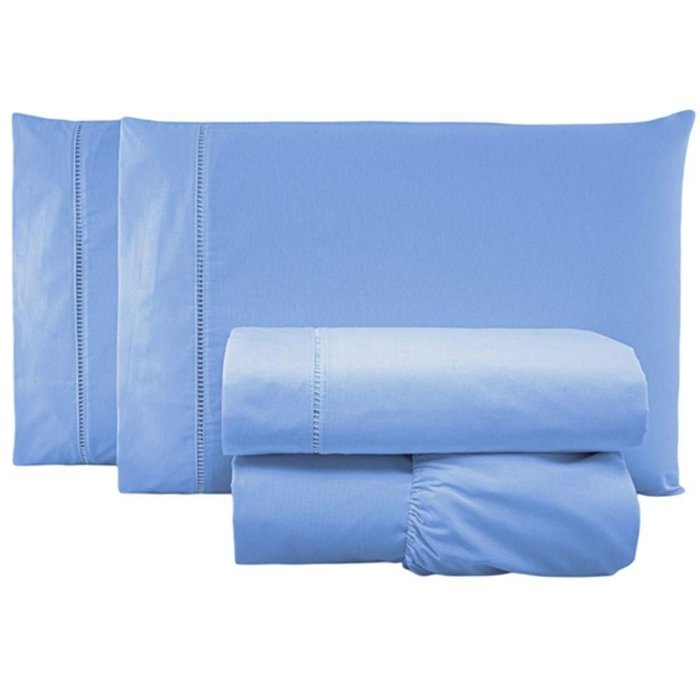 Jogo De Lençol Queen Percal 200 Fios 100% Algodão 4 Peças - Azul