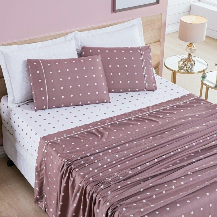 Jogo de Lençol Queen Petit Poa 200 Fios 4 Peças Cor Poa Rose