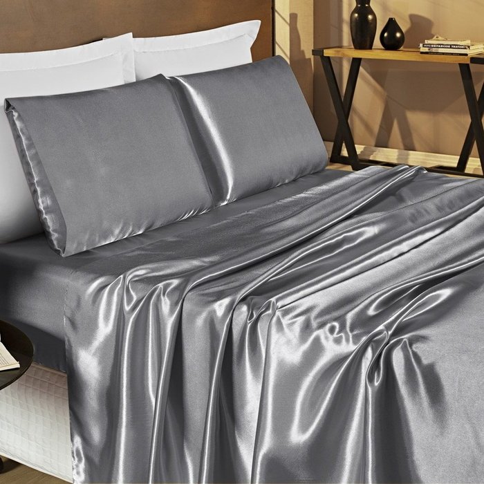 Jogo de Lençol Queen Romantic Cetim Charmousse 4 Peças - Prata Bia Enxovais Prata