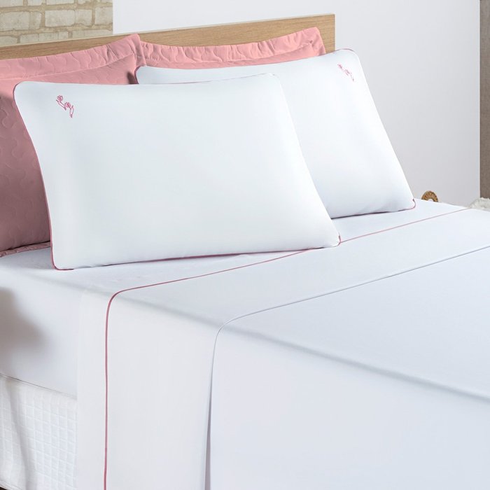 Jogo de Lençol Queen Size 4 Peças Fronha e Lençol Elástico Percal Algodão Bordado 200 Fios Branco