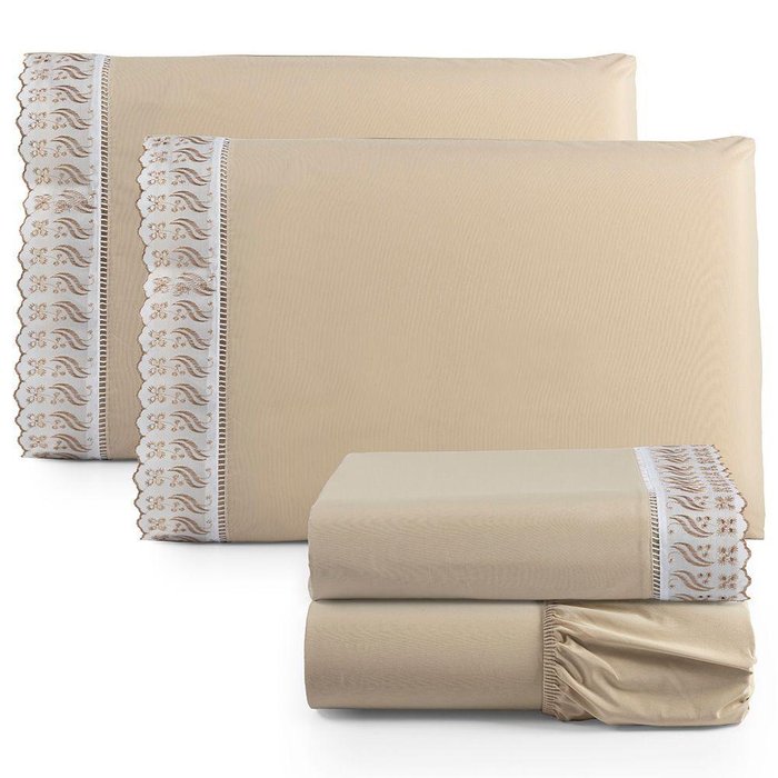 Jogo de Lençol Queen Suave Barrado Lese 4 Peças Barato - Castor