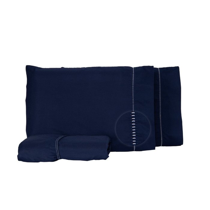Jogo de Lençol Solteiro 2 Peças Micropercal 400 Fios Liso:azul-marinho
