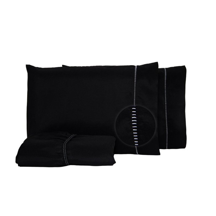 Jogo de Lençol Solteiro 2 Peças Micropercal 400 Fios Liso:preto