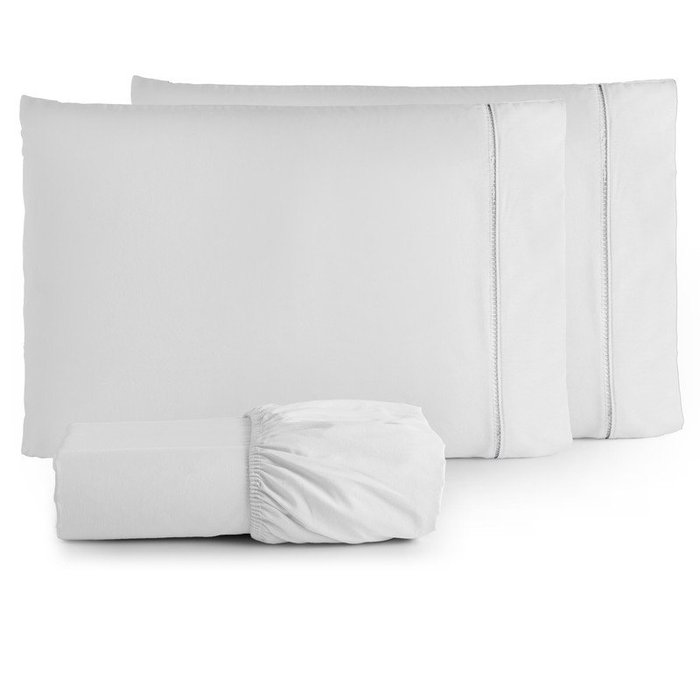 Jogo de Lençol Solteiro 3 Peças 180 Fios Algodão Liso:branco