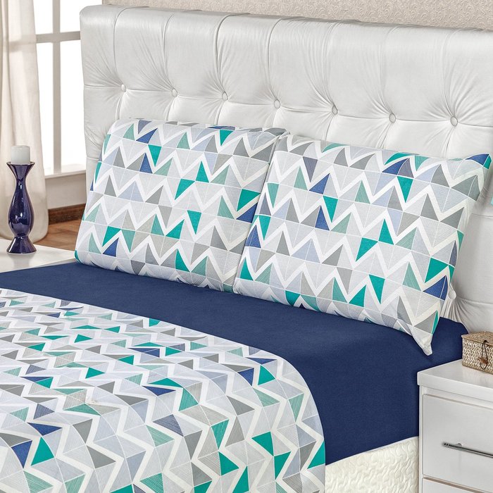 Jogo de Lençol Solteiro 3 Peças Quality Fronha e Lençol de Elástico Malha 100% Algodão 200 Fios Azul