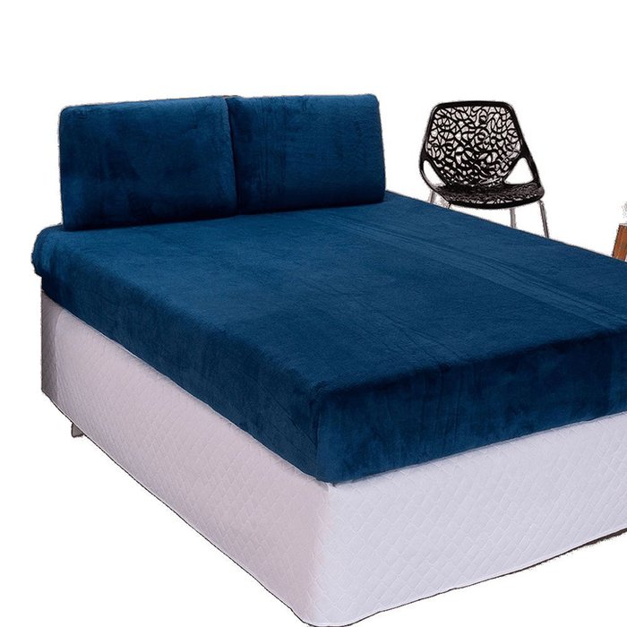 Jogo de Lençol Solteiro em Manta Plush 2 Peças - Marinho - 100% Poliéster