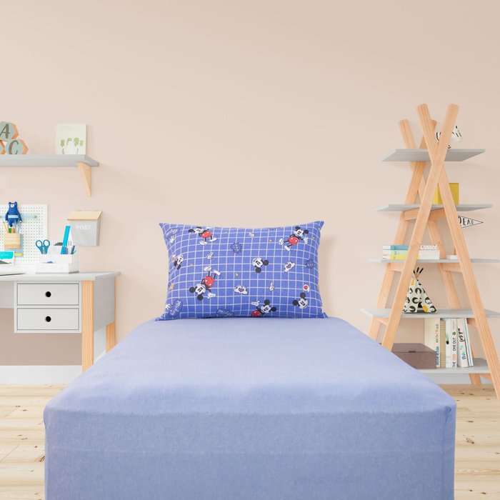 Jogo de Lençol Solteiro Malha Doce Vida Disney 2 Peças Hey Mickey/azul Jeans Hey Mickey/Azul Jeans