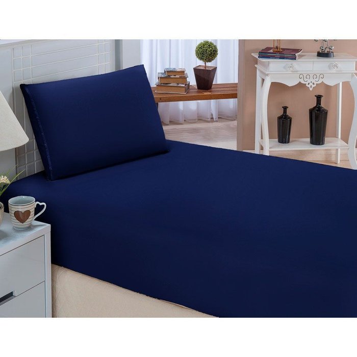 Jogo De Lençol Solteiro Padrão Liso Pati 02 Peças Tecido Microfibra - Marinho