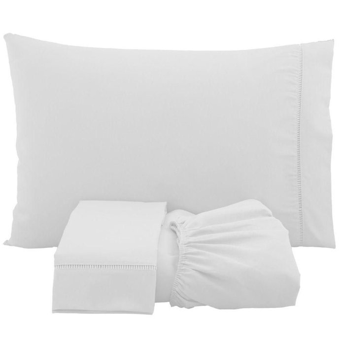 Jogo de Lençol Solteiro Percal 200 Fios 3 Peças - Branco