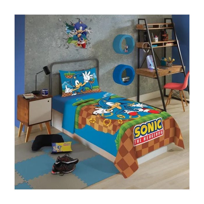 JOGO DE LENÇOL SOLTEIRO SONIC 3 PEÇAS