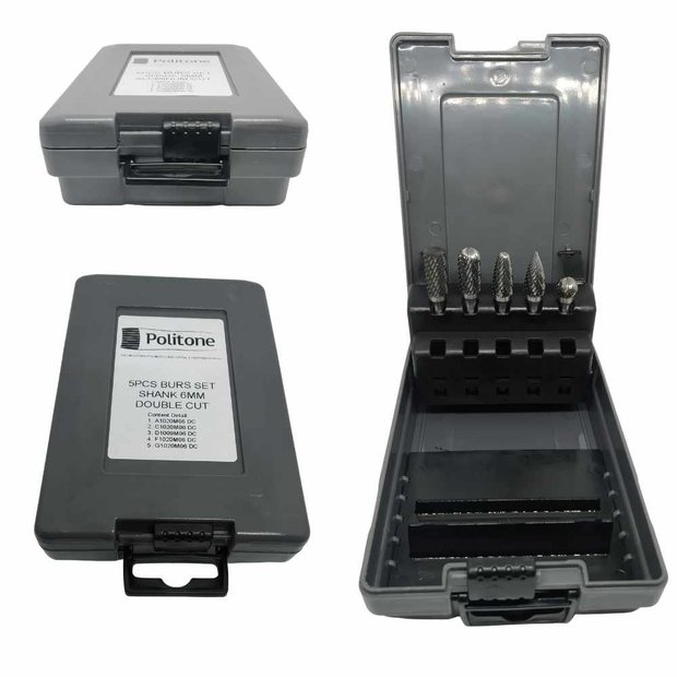Jogo de Lima/Fresa Metal Duro 5 peças Ø6mm da marca Politone é feito com material HSS ( Carbureto de Tungstênio) atendendo assim a necessidade de um trabalho mais exigente pois são ideais para utilização em aço, ferro fundido, madeira, resinas entre outros