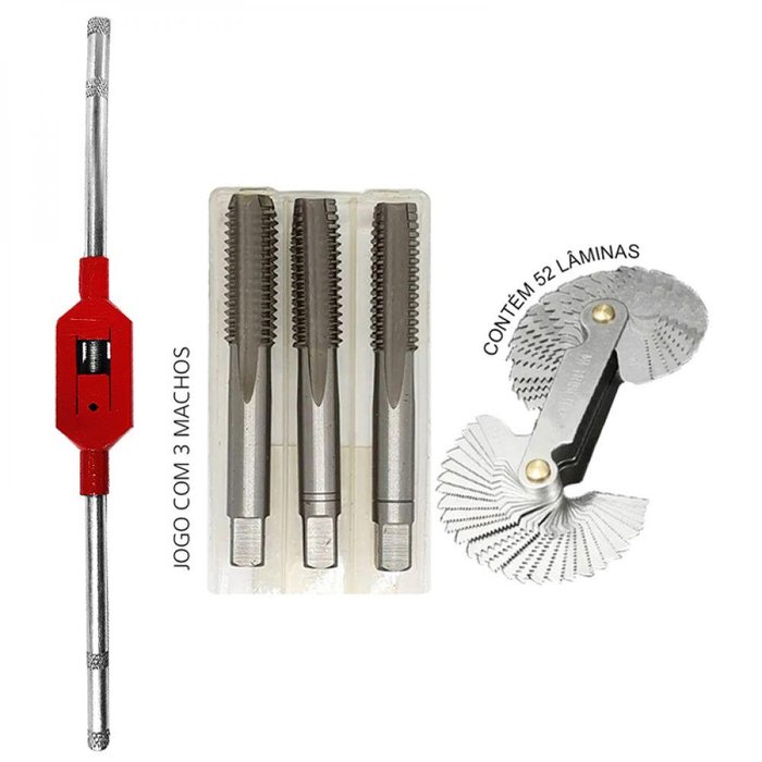 Jogo de Macho - M4 x 0,7 + Desandador + Cálibre de Rosca O QUE É O MACHO MANUAL O Macho Manual é uma ferramenta capaz de realizar o processo de abertura de rosca no material. Hoje no mercado temos diversos modelos e tamanhos, desde os de rosca Métrica Grossa, Métrica Fina, Polegada Fina/Grossa, aos BSP utilizados em tubos. Comumente fabricados entre Aço Rápido ou Aço Liga, eles possuem esse leque de variedades, sendo de grande importância saber o modelo exato que melhor te atende. PARA QUE SERVE O MACHO MANUAL Como mencionado, o macho manual torna possível a abertura de rosca em diversos tipos de materiais. PASSO A PASSO DE COMO SE UTILIZAR O MACHO MANUAL O primeiro objetivo a se fazer, é realizar o furo na peça com a broca de diâmetro que melhor se adequa ao macho manual que será utilizado. Machos de medida M6 X 1 requer uma broca de diâmetro 5,0mm, por exemplo. Após realizar o furo, é preciso acoplar o macho em um vira macho desandador, ou em tornos mecânicos, com a máquina desligada. No desandador, o encaixe é feito juntando o quadrado localizado na parte superior do macho. Para se ter compatibilidade, a medida do desandador deverá ser congruente com a ferramenta. (Esta etapa aconselha-se também, utilizar os machos obedecendo a ordem correta de passagem. Macho com apenas uma marcação em sua haste, deverá ser utilizado primeiramente, e em seguida, o macho com 2 riscos. Kits que apresentam 3 ferramentas em seu conjunto, comumente possuem uma ferramenta sem nenhuma marcação. Porventura, este deverá ser utilizado por último, dando o acabamento no material). É um procedimento leve, girando no sentido horário e anti-horário, voltando a ferramenta em uma execução de vai e vem. Sendo de muita importância também, o uso de fluídos de corte durante a operação. ITENS INCLUSOS NO KIT - (01) Jogo de macho M4 X 0,7;