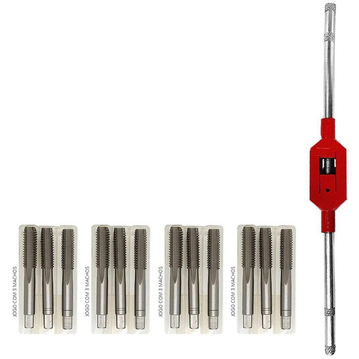 É um procedimento leve, girando no sentido horário e anti-horário, voltando a ferramenta em uma execução de vai e vem. Sendo de muita importância também, o de fluídos de corte durante a operação. ITENS INCLS NO KIT DE MACHO - (01) Jogo de macho - BSW 3/16x24;