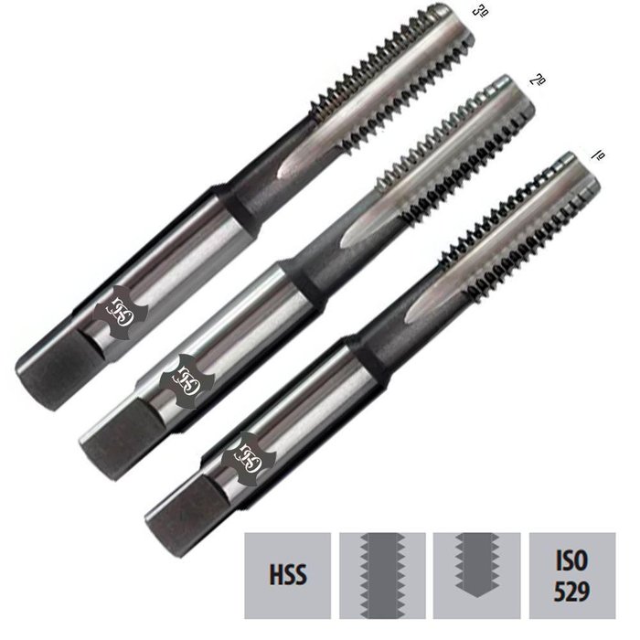 Jogo De Macho Manual Hss - Bsw 1/4 X 20 - 010/d - Iso 529 Perfil Completo - 3 Peças - Osg