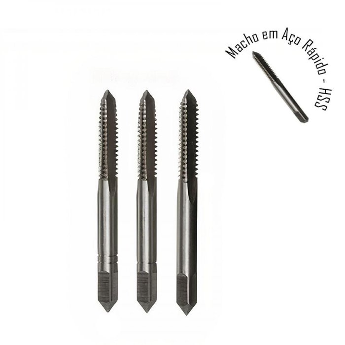 Jogo De Macho Manual Hss - UNC N°4 - 40/ 3 Pçs O QUE É O MACHO MANUAL O Macho Manual é uma ferramenta capaz de realizar o processo de abertura de rosca no material. Hoje no mercado temos diversos modelos e tamanhos, desde os de rosca Métrica Grossa, Métrica Fina, Polegada Fina/Grossa, aos BSP utilizados em tubos. Comumente fabricados entre Aço Rápido ou Aço Liga, eles possuem esse leque de variedades, sendo de grande importância saber o modelo exato que melhor te atende. PARA QUE SERVE O MACHO MANUAL Como mencionado, o macho manual torna possível a abertura de rosca em diversos tipos de materiais. PASSO A PASSO DE COMO SE UTILIZAR O MACHO MANUAL O primeiro objetivo a se fazer, é realizar o furo na peça com a broca de diâmetro que melhor se adequa ao macho manual que será utilizado. Machos de medida M6 X 1 requer uma broca de diâmetro 5,0mm, por exemplo. Após realizar o furo, é preciso acoplar o macho em um vira macho desandador, ou em tornos mecânicos, com a máquina desligada. No desandador, o encaixe é feito juntando o quadrado localizado na parte superior do macho. Para se ter compatibilidade, a medida do desandador deverá ser congruente com a ferramenta. (Esta etapa aconselha-se também, utilizar os machos obedecendo a ordem correta de passagem. Macho com apenas uma marcação em sua haste, deverá ser utilizado primeiramente, e em seguida, o macho com 2 riscos. Kits que apresentam 3 ferramentas em seu conjunto, comumente possuem uma ferramenta sem nenhuma marcação. Porventura, este deverá ser utilizado por último, dando o acabamento no material). É um procedimento leve, girando no sentido horário e anti-horário, voltando a ferramenta em uma execução de vai e vem. Sendo de muita importância também, o uso de fluídos de corte durante a operação. ESPECIFICAÇÕES DO JOGO DE MACHO MANUAL - Marca: JG TOOLS;