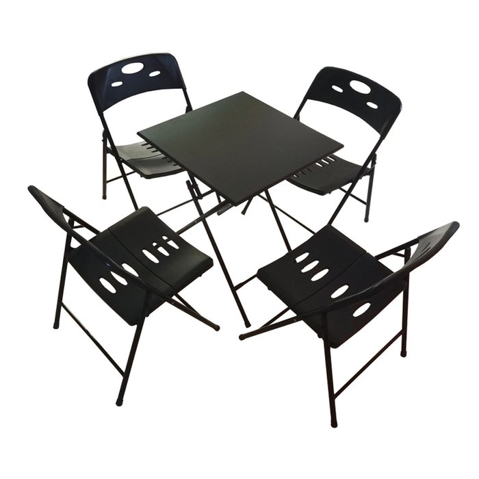 Jogo de Mesa 4 Cadeiras em Aço e Plástico Resistente Preto