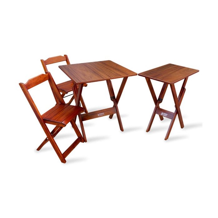 Conjunto de mesa 70x70, 2 cadeiras e mesa aparador tarimatã. Propria para sua casa, para ser usada em bares, restaurantes, pizzaria, lanchonete, etc... Produto de alticima qualidade com o padrão Tarimatã.