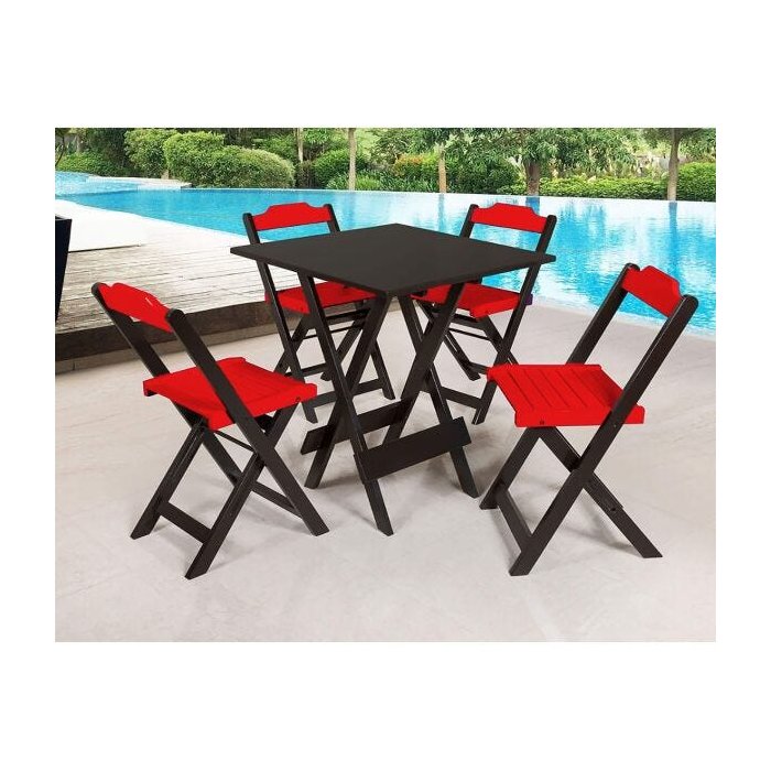 Dimensões da Mesa Altura 75cm Largura 70cm Profundidade 70cm Dimensões das Cadeiras Altura 46cm até o acento Largura 38cm Profundidade 38cm Produto feito com madeira de eucalipto Perfeito para quem quer qualidade Dobrável para melhor organização para guardar Acabamento PU LISO Cor Tabaco / Vermelho Produto leve e de fácil manuseio A Loja Não Oferece Serviço de Montagem. Todos os nossos móveis possuem manual de montagem com passo a passo para você ou seu profissional de confiança montá-lo.