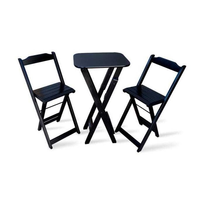 Jogo de Mesa Bistrô com 2 Cadeiras Dobrável - Preto Preto