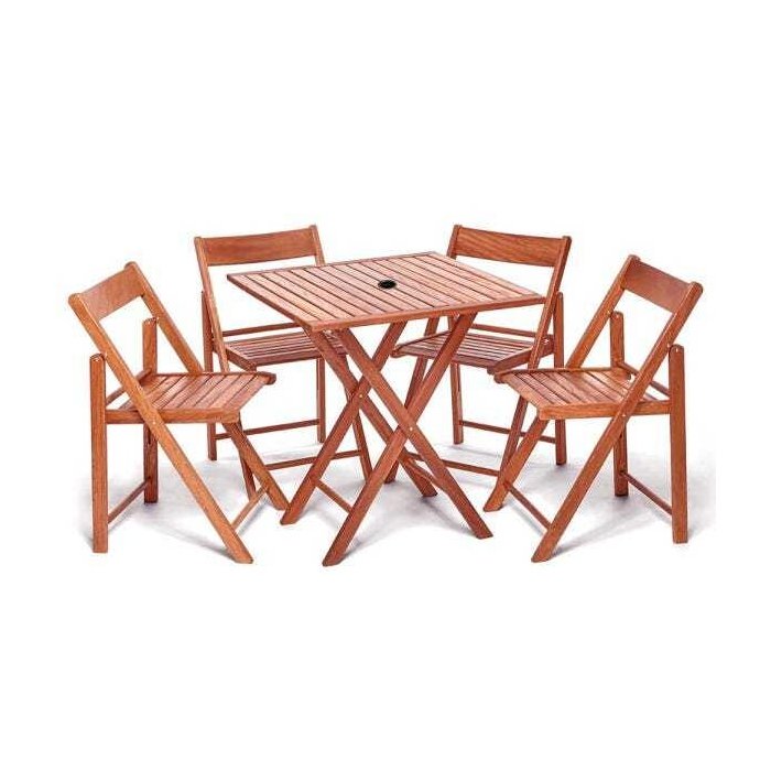 Jogo De Mesa Com 4 Cadeiras De Madeira Dobravel Gourmet Premium Luxo Mogno Com Suporte Para Ombrelon